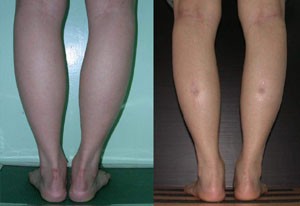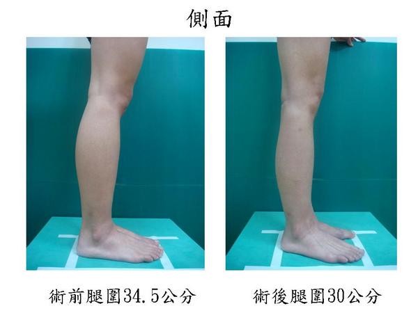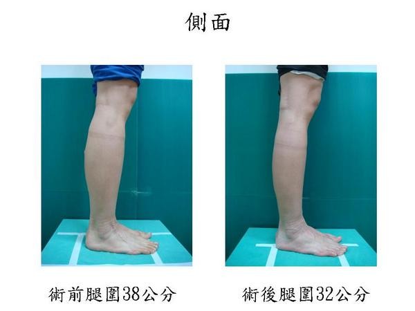 手術前兩腿大小差距2.5公分,手術時左右兩腿切除的肌肉不同,使得