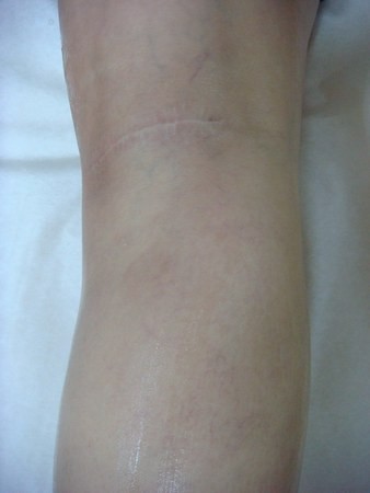請注意手術前穿著長褲(捲起),手術後回診穿著短裙