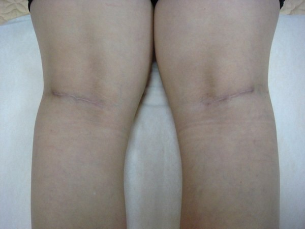 她兩年多前曾做過神切+抽脂,請注意手術前有很明顯的神切疤痕