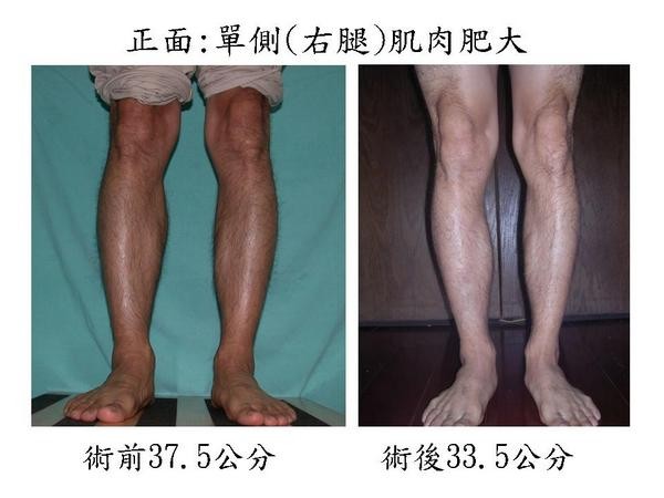 手術前小腿大小差距2.5公分,手術時左右小腿切除的肌肉不同,使得