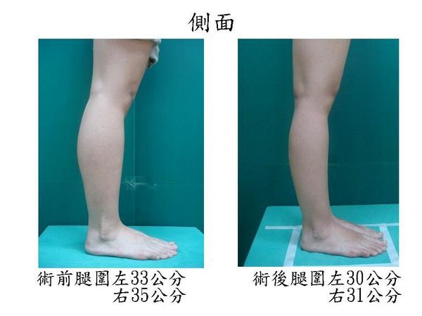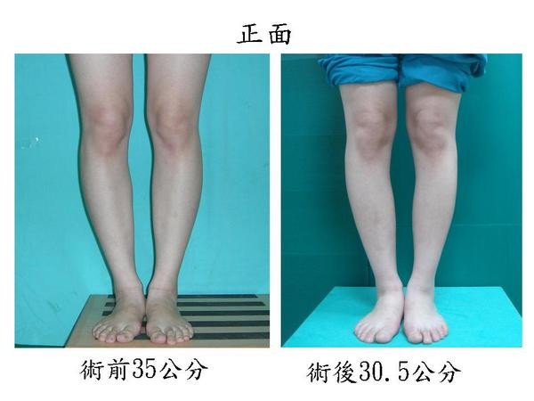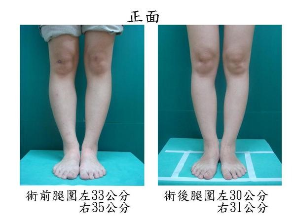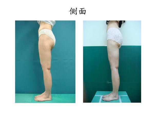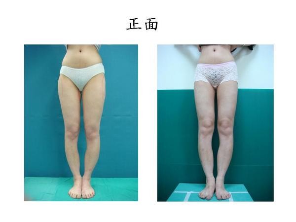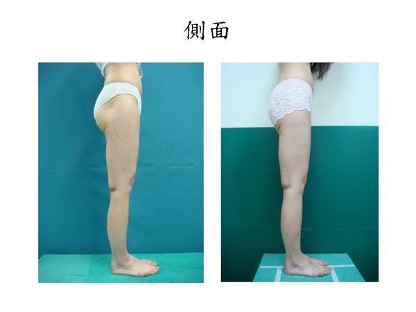 手術後兩腿差距僅1公分。另外請注意抽脂前,